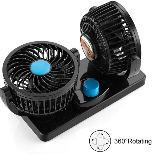 12V DC Electric Car Fan - 2 Speed ​​Rotating Double Blades with Powerful Cooling