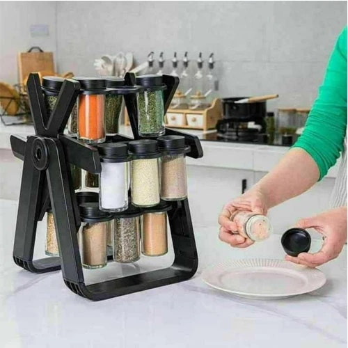 360 Degree Rotating Spice Set, 18 Glass Jars