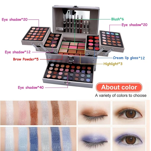 Essential Makeup Set -- Great makeup set for makeup lovers. We offer a variety of cosmetics and applicators. Contains eye shadow, lip gloss, eyebrow cream, makeup pencil, concealer, etc. Comes in a beautiful gift bag, this set complements each other, different colors for different aspects, to meet all your daily makeup needs. COMPLETE MAKEUP KIT -- Sticks well, has good durability, suitable for all skin types. Ultra-fine and velvety powder, highly pigmented and long-lasting texture, a range of colors at your fingertips, standardized color intensity for a wide range of looks, keeps your makeup flawless. All cosmetics are washable and easy to remove with facial cleanser or makeup remover lotion, no odor and no skin irritation, saving you worry. Versatile Makeup Kit -- Fully equipped and easy to carry, one set solves your entire face makeup, makes you look charming and attractive all day long. Perfect for girls everyday, special occasions or occasions, such as casual, salon, party and wedding. Perfect for naturally beautiful and dramatic makeup, wedding makeup, stage makeup, party makeup or casual makeup. Even during the trip, you can take small containers of makeup with you. BEGINNER COSMETICS KIT - All-in-one travel makeup kit, the perfect combination of style and functionality. Convenient to store and carry, reducing luggage space. Take your cosmetic bag with you, perfect for travel or long vacations. You can take your makeup set wherever you go, on vacation, on long trips or just on the weekend. Lightweight, soft, easy to create clear and beautiful makeup. BEAUTIFUL GIFT IDEA -- Allows you to create endless makeup looks with classic and playful looks, to recreate sophisticated or edgy looks for day and night. Suitable for professional or home use, as well as for makeup lessons and beginners. It is a perfect gift choice for birthday, festival, wedding, Halloween, Thanksgiving, Christmas, Valentine's Day and other holidays for daughter, mother, wife, boyfriend and friends. |