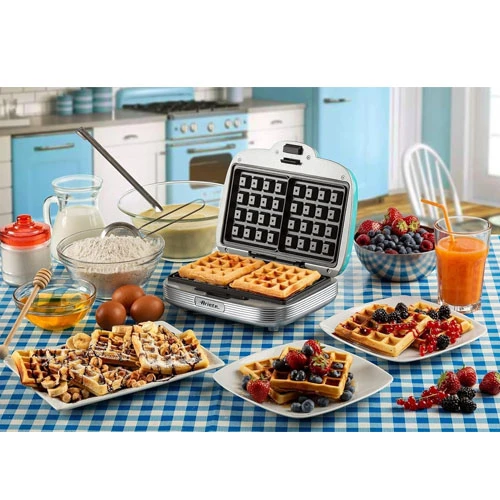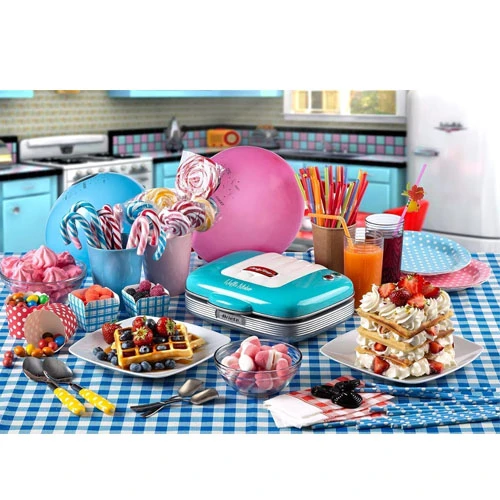 Ariete Party Time Waffle Maker with Non-Stick Pans, Cord Reel, Safety Lock, and