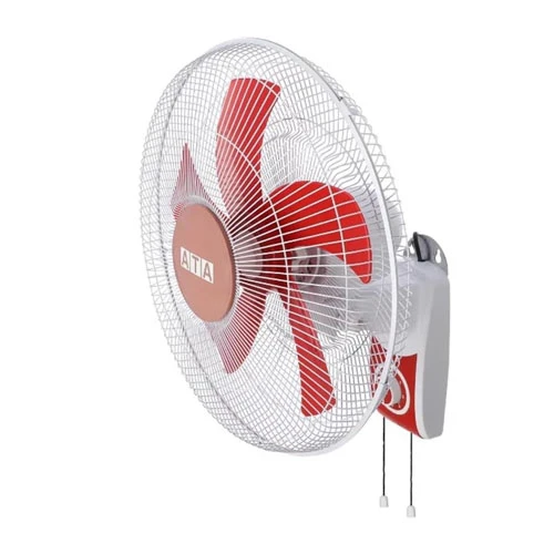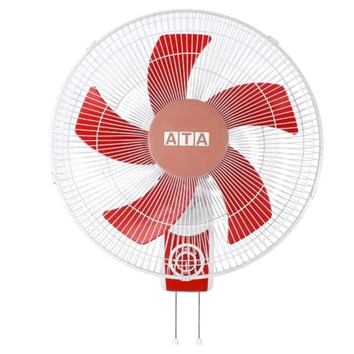 Brand: ATA - Type: Wall Fan - Model: B1605 - Color: White and Red - Size: 16 inches - 5 blades - 3 speeds - Blade material: Reinforced plastic - Quiet operation - Adjustable up and down - Left and right swivel - Voltage: 220-240 volts |