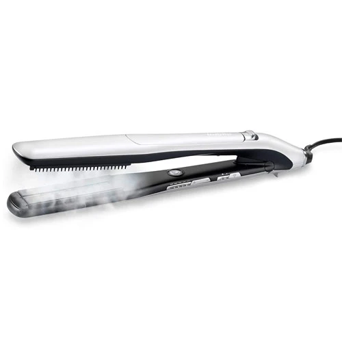 Product Benefits: Hair Straightener Item Shape: Straight Brand Name: BaByliss Hair Type: All Material: Ceramic Color: White Size: One Size Model Name: BaByliss Steam Luster Styler 5 Settings Item Weight: 1.04 kg Power Source: Corded |