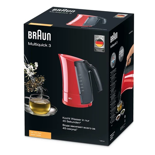 Brand Name: Braun Capacity: 1.6 liters Material: Plastic Color: Red Special Features: Rapid Boiling Bowl Type: Kettle Voltage: 220 volts Finish Type: Electroplated Wattage: 2200 watts |