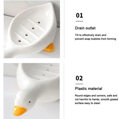 1.UNIQUE DESIGN: Our soap holder is not just a soap dish, it is also a lovely home decoration. We've use a cute duck-shaped design that's different from ordinary soap holders, so it adds a touch of fun and whimsy to your bathroom.