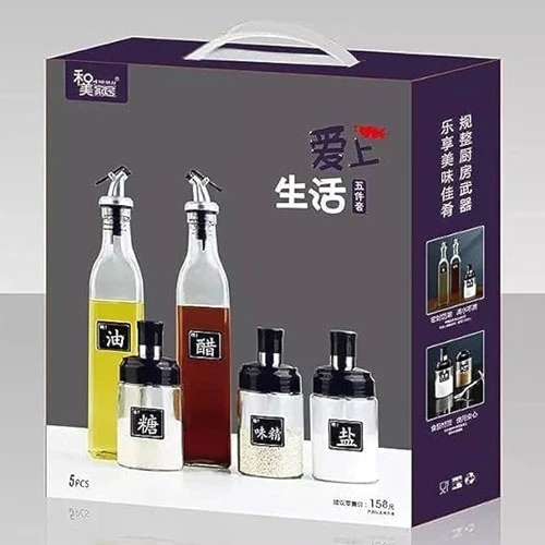 Stylish design, compact structure, comes in a nice package, set of 2 oil bottles and 3 spice jars. Perfectly designed. |