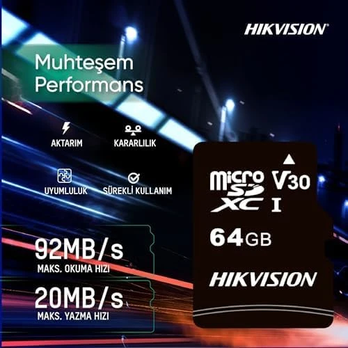 HIKVISION Micro SD Card Save every splendid moment in your life at will. The general version of the consumer C1 series Micro SD (TF) card is selected to provide higher performance with better storage medium. Up to 92 MB/s read and 50MB/s write speed, strong compatibility, it is widely used in mobile phones, cameras, tablets, etc. For fast data storage, it can also be used to install a small capacity of industrial control system files.