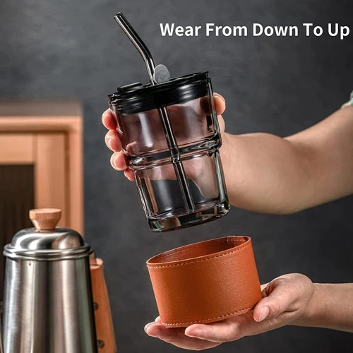 Lightweight and portable: glass water bottles are ergonomically designed. Whether you have big or small hands, you can easily hold these glass cups. The anti-scalding and anti-cold leather case makes the cup look advanced. So glass tumbler is very suitable for outdoor travel