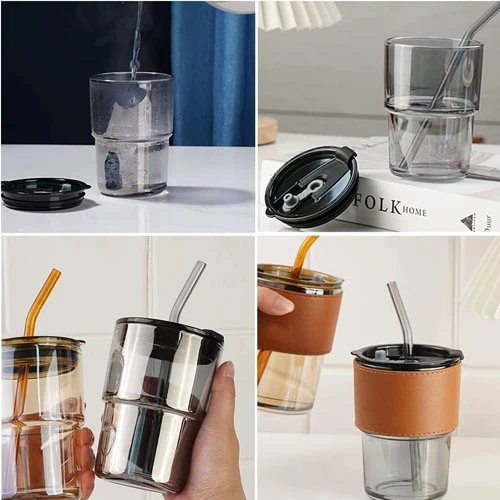 Dual-purpose design: This glass cup can not only be drunk with a straw, but also you can drink your favorite beverage directly to your mouth by opening the small lid on the cup lid. The lid of the cup is sealed with a rubber ring, which can effectively prevent leakage