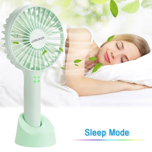 4 ADJUSTABLE SPEED LEVEL - This mini fan has 4 speed levels (Low/medium/high/sleep mode)can adjust by pressing the power button repeatedly. The sleep mode can avoid headaches, stuffy nose caused by prolonged strong wind and meet the physiological needs of people. And 4pcs fan blades, strong wind, wind distance up to 3m. Brushless motor makes the fan durable.