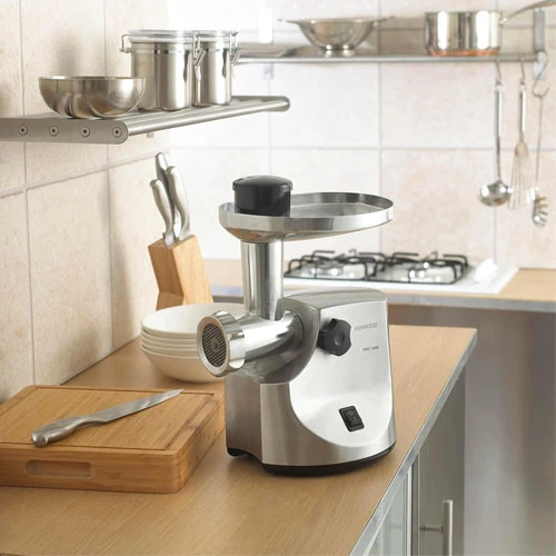 Color: Stainless Steel Brand Name: Kenwood Material: Stainless Steel Style: Robust Item Weight: 5330 grams Wattage: 450 watts Capacity: 2 kg Recommended Uses: Meat grinding, sausage making, and processing ingredients |