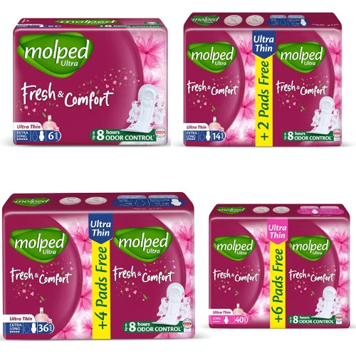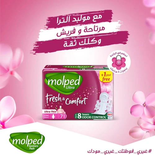 Control odor for up to 8 hours with a floral scent. Feel comfortable all day long with superior skin comfort thanks to the silky top layer. Dermatologically tested. Molped.