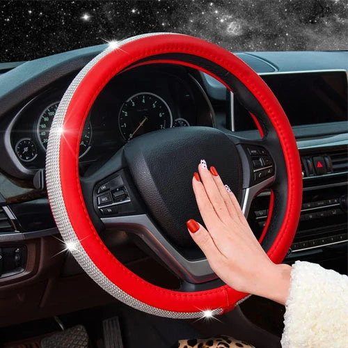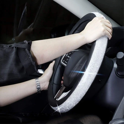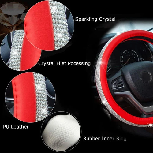 Crystal Steering Wheel Cover Material: High Quality PU Leather and Top diamond craftwork: more stable compare with other same products,and will not hurt your hands.