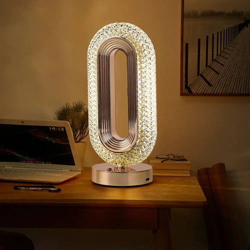 Oval Crystal Touch Lamp with USB Charging, Multi-Color, 3 Brightness Levels