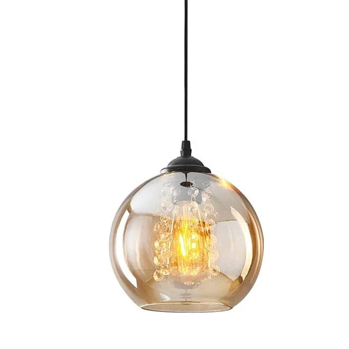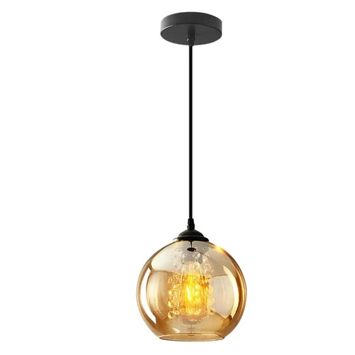 Design: A modern, vintage pendant lamp crafted from exquisite hand-blown glass and a thick, synthetic crystal shade