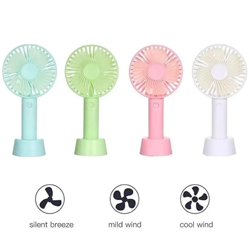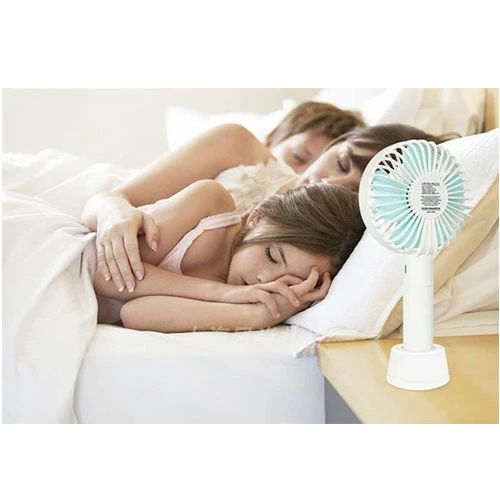 A small portable fan for a desk or table. Equipped with a metal stand and clip, it can be placed on umbrellas, strollers, desks, and tents, hands-free. This small, rechargeable cooling fan is ideal for indoor use, in the office, at home, in dorms, in the study, library, game room, and for outdoor activities such as the beach, picnics, and events