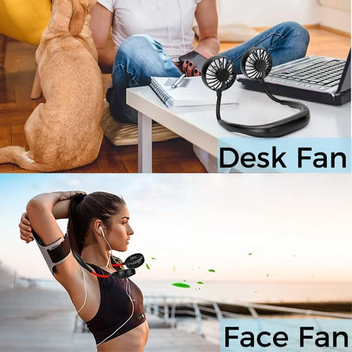 【The Preferred Portable Neck Fan Cooling for the Young and Old in Hot Weather】- Personal fan was designed as a headphone to free your hands anywhere, Fashion style makes you look so cool and you can take it outside around your neck in hot weather even if the temperature is so high. This portable usb fan is ideal for personal cooling,office, outdoor activities, such as camping,travel, fitness, hiking, climbing, watching sports etc.