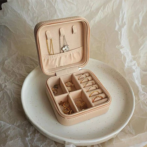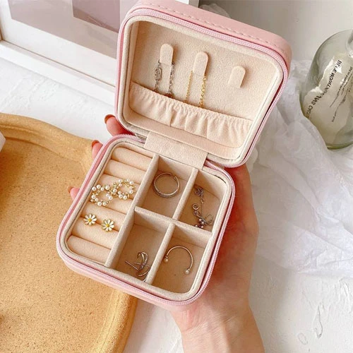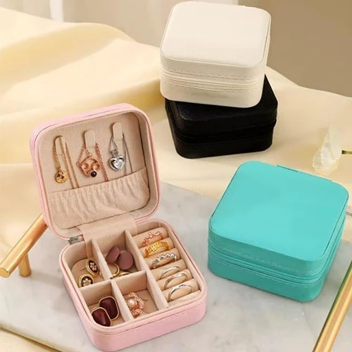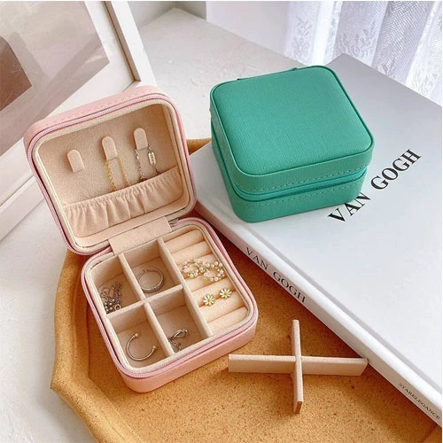 Small Portable Leather Travel Jewelry Box Jewelry Ring Organizer Gift Box for Gi