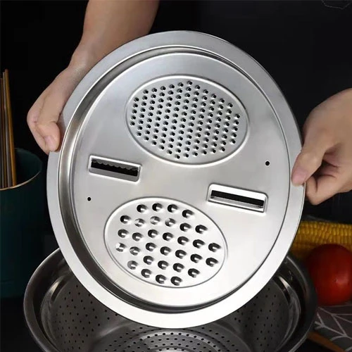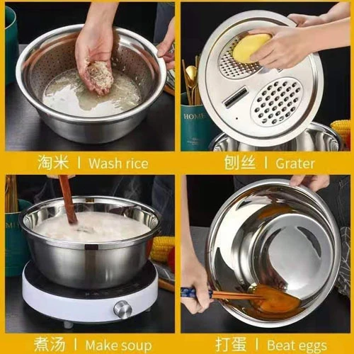 Stainless steel 6-purpose dough hook, grater, strainer, and grater set
