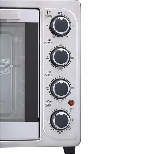 Brand Name: EDO Color: Silver Product Dimensions: Depth x Width x Height: 60 cm Capacity: 50 liters Special Features: Temperature Control Wattage: 2000 watts Material: Glass Door Style: Drop-down door Included Components: Oven, Wire Rack, Baking Tray, Tray Handle, Grill Set, Deep Round Tray Item Weight: 9 kg |
