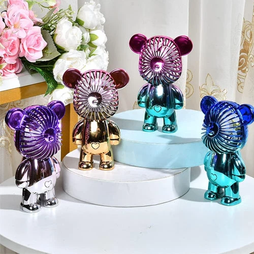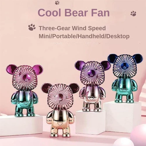 【EXQUISITE DESIGN】- YOGAI mini portable desk fan adopts bear design, more fashionable, the fan head adopts mesh cover design to ensure safety, electroplated gradient color makes the fan more fashionable and the base adopts non-slip design and more stable stand, it can also be used as a desk decoration, summer companionship is more interesting 【COMFORTABLE/ULTRA QUIET】- The best desk fan with high-performance motor and built-in high-quality power with low noise up to 20dB, don't let the noise affect your work, mini USB fan with diameter of 14cm, weighs only 300g, allows you to carry it with you, making it a great companion in summer for leisure time |